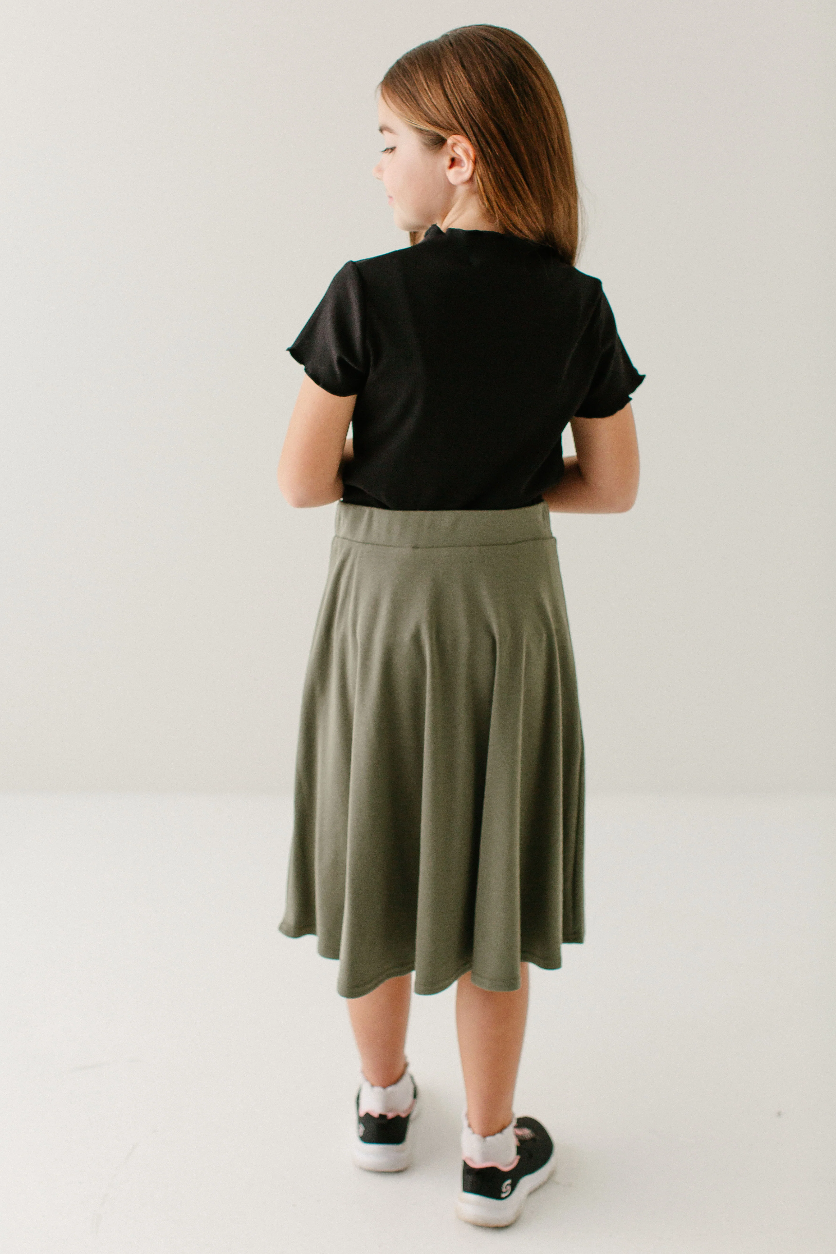 Embrace comfort and play with the 'Eva' cotton blend skater skirt! This skirt features a comfortable and flowy fit so your girl can play with ease. Pair with a basic tee and white sneakers for a fun and simple ensemble for school or the weekend! Exclusively designed by us with you in mind.
